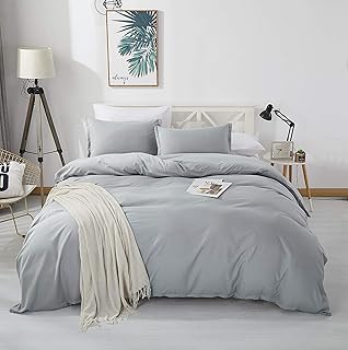Alazuria 寝具布団カバー3点セット 100%ウォッシュ加工マイクロファイバー ウルトラソフト 通気性 低刺激性 ジッパー開閉 (掛け布団カバー1枚+枕カバー2枚) クラウドグレー キング