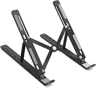 JIAJIA ノートパソコン スタンド ノートpc スタンド 折りたたみ式 6段階高さ角度調整可能 アルミ合金 pc スタンド 軽量 PC/ラップトップ/ノートpc スタンド パソコン スタンド 滑り止め搭載 持ち運び可能 収納袋セット (ブラック)
