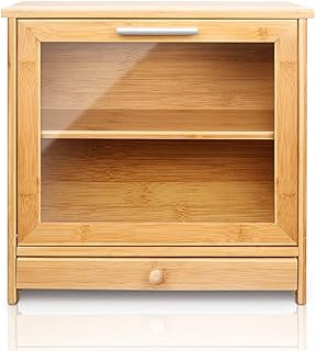 天然竹 パンボックス 2層 調節可能 パン収納容器 クリアフロントウィンドウ ツールドローワー 15.7インチ x 15インチ x 8.7インチ 大容量 キッチンカウンター用 食品保存容器