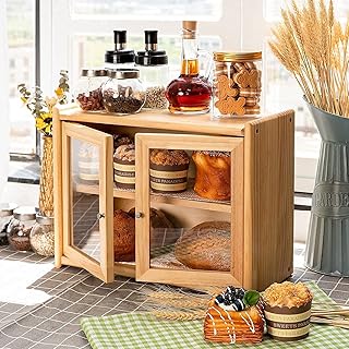 MHONFL パンボックス キッチンカウンター用 特大 2層 農家 竹 パンボックス クリアウィンドウ付き 木製 素朴なパン収納ホルダー キッチンカウンター用 9.9インチ X 15.1インチ X 12.6インチ